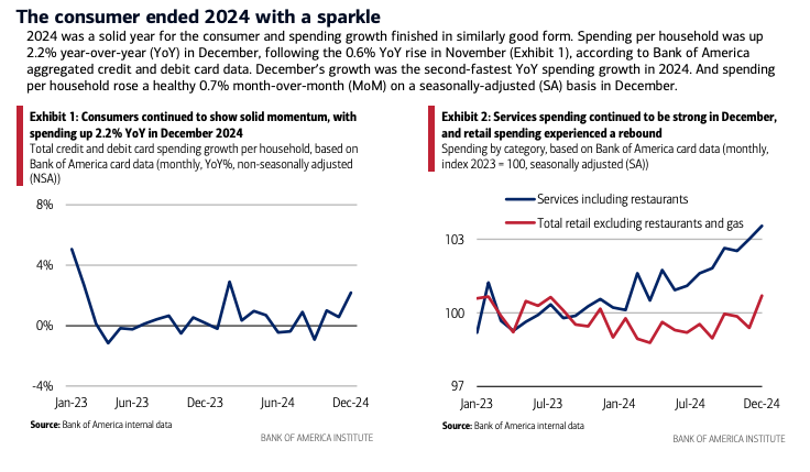 Both the economy and consumer activity remain resilient, indicating stable to upward demand trends as 2025 begins.