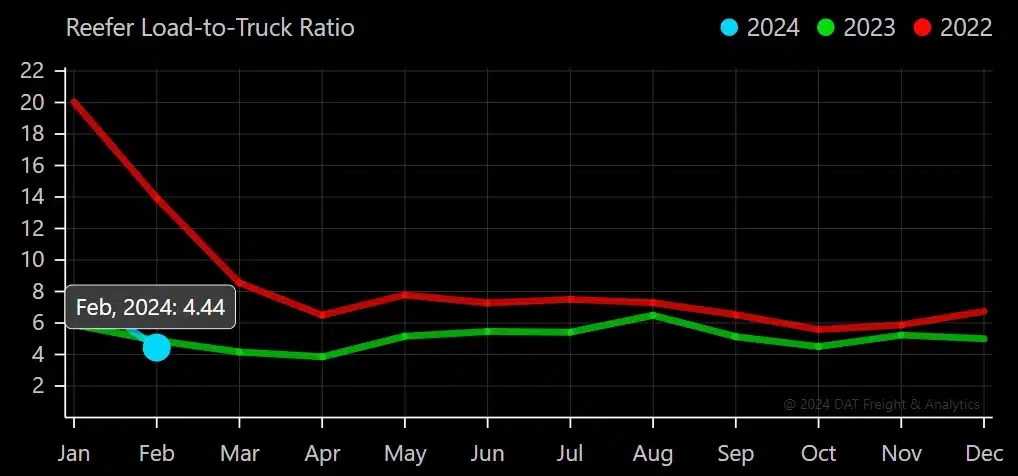 Reefer markets were volatile due to winter weather in early 2024 but have loosened over the past six weeks.