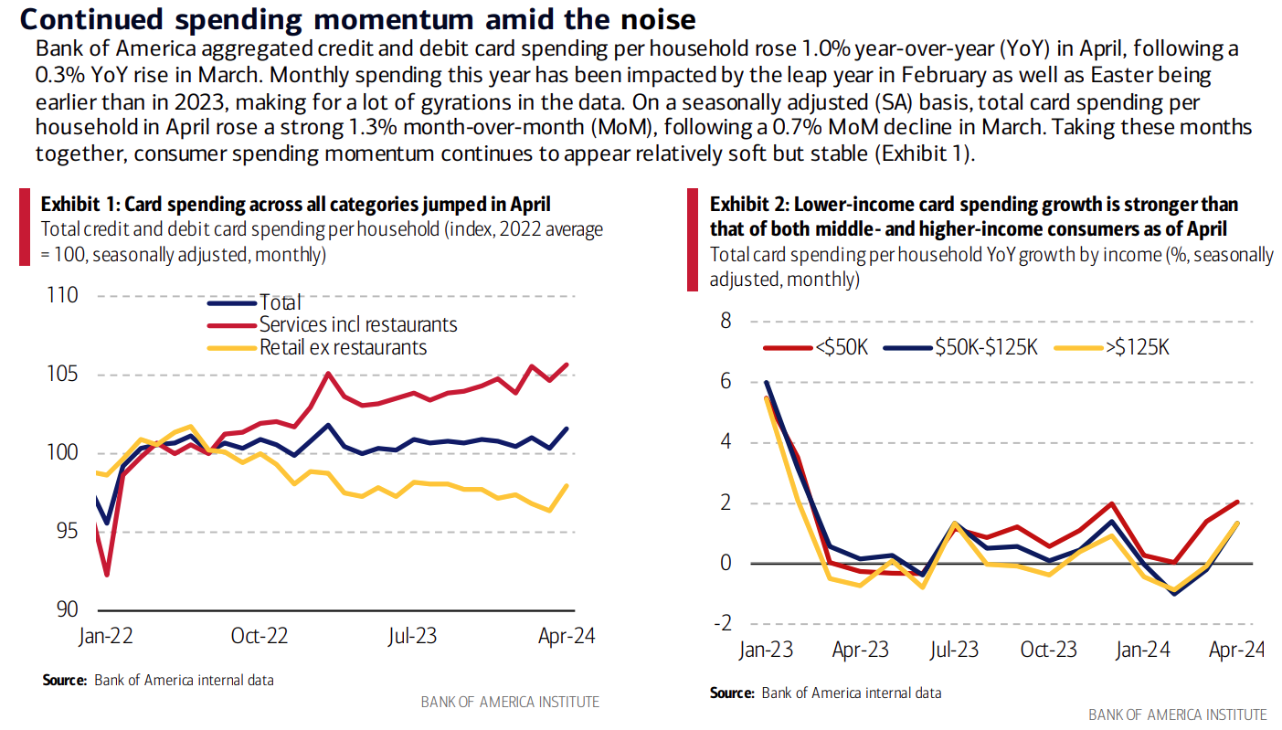 Bank of America card data showed a 1% year-over-year increase, with spending rising in the service and retail sectors, which should support a strong freight environment. Lower-income households’ after-tax wages and salaries increased, leading the growth rate to outpace middle and upper-tier income households. While encouraging, the cooling labor market could soon present new challenges, such as reduced spending on non-essential goods.