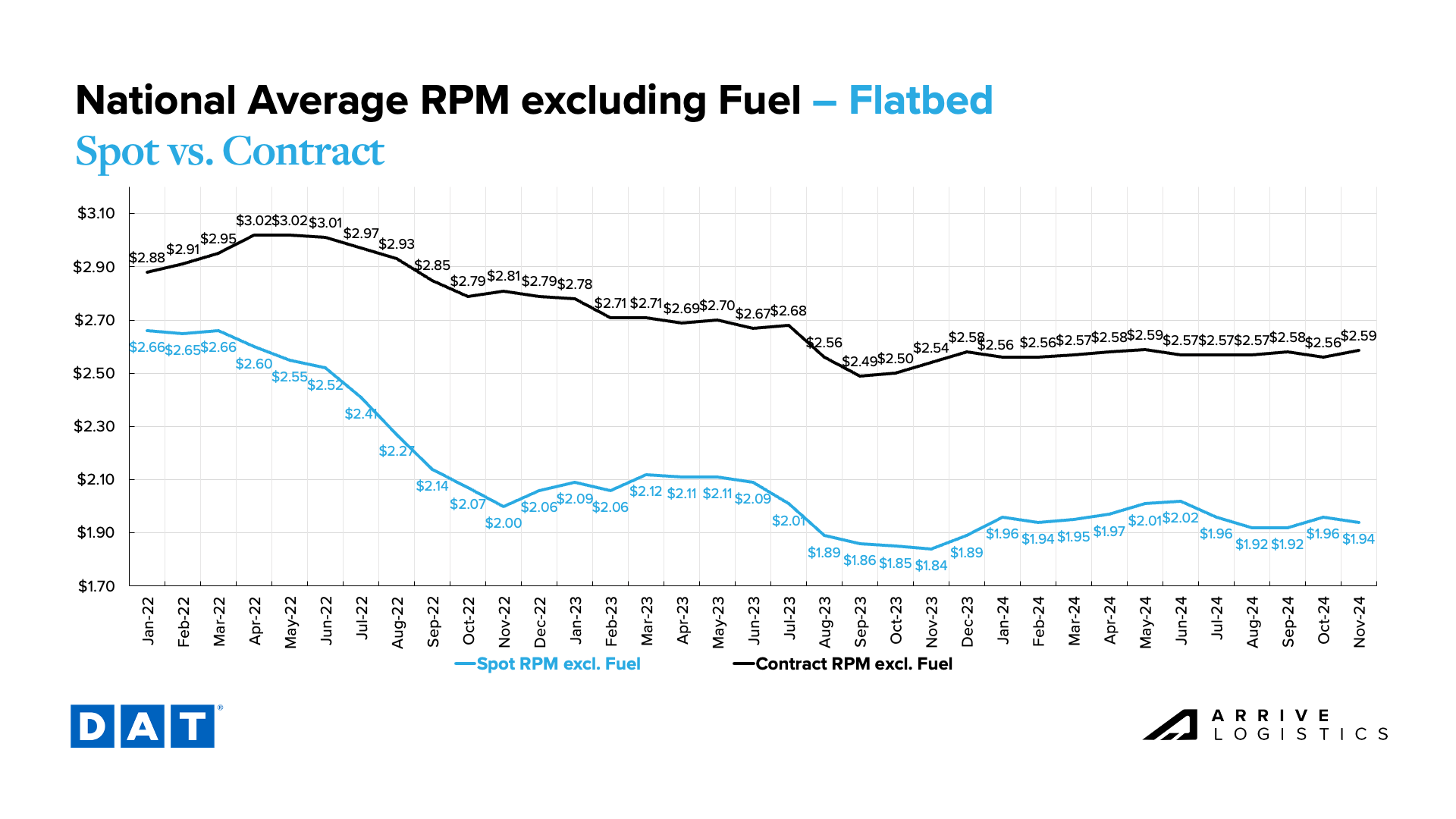 We continue to monitor the evolving role of private fleets as they increase their share of the for-hire market despite overall volume declines. With less freight available, for-hire carriers are negotiating rates aggressively to maintain volume and revenue, putting downward pressure on spot rates in turn. If this trend persists, it could extend the current rate environment deeper into 2025.
