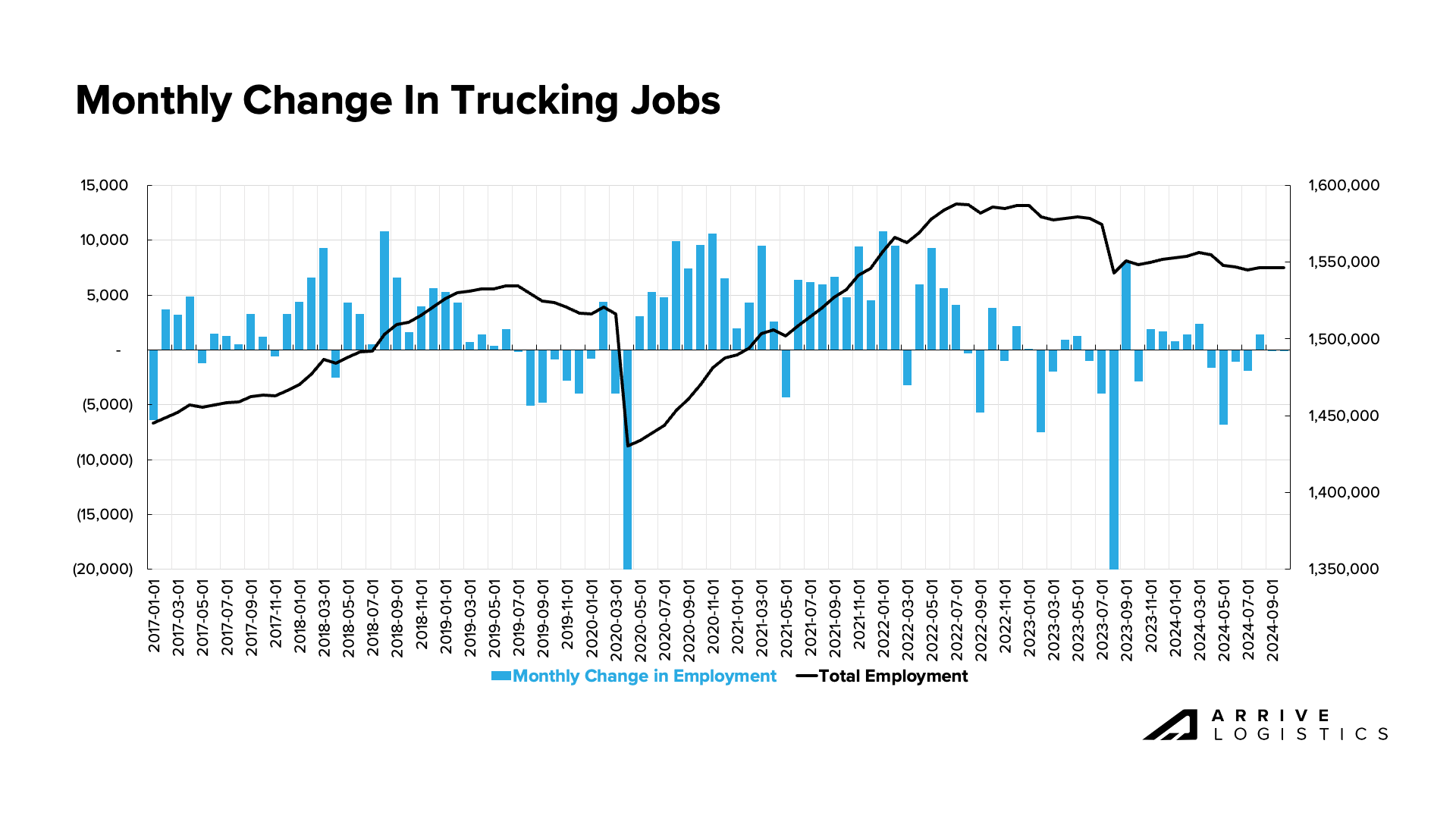 What’s Happening: Trucking jobs declined by 100 on a seasonally adjusted basis in October.