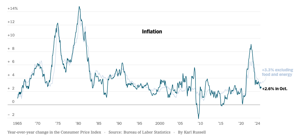 Inflation rose from 2.4% in September to 2.6% in October, still short of the 2% target rate. Though the Fed may cut interest rates by another quarter percent during its December meeting, there would be little to no impact until mid-2025.