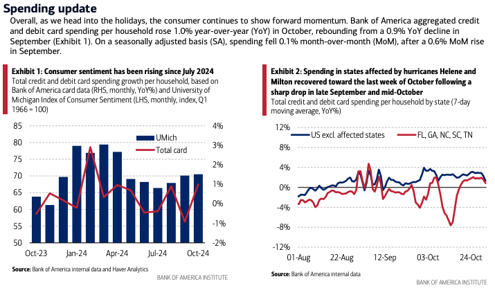 Inflation remains above 2%, increasing the likelihood of additional rate cuts; this should help drive strong consumer spending heading into the holiday season.