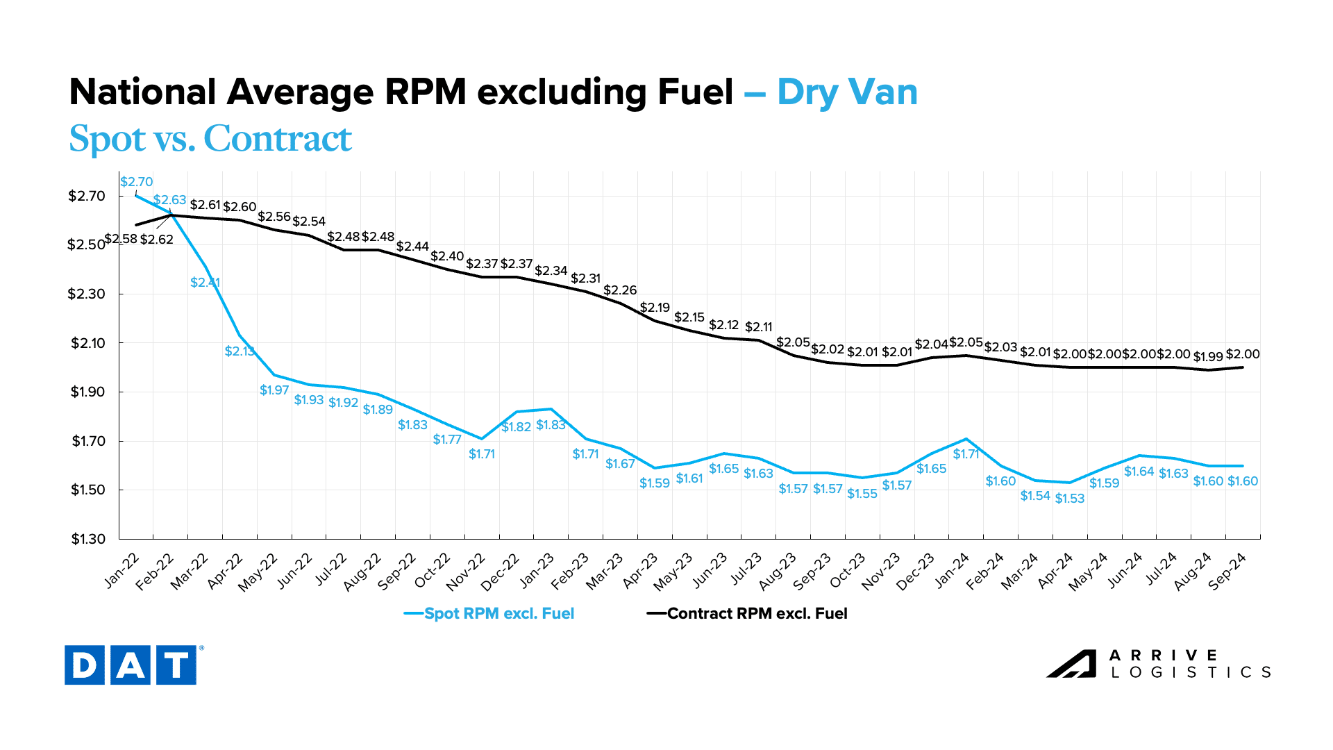 Despite persistently low rates, resilient carriers have helped keep capacity steady and sufficient to service demand. Limited and low-rate spot market opportunities continue to encourage carriers with contractual volume to capitalize on strong rates by honoring their commitments. While obtaining precise capacity data remains challenging, recent trends and flattening rates indicate market stability as we move into Q4.