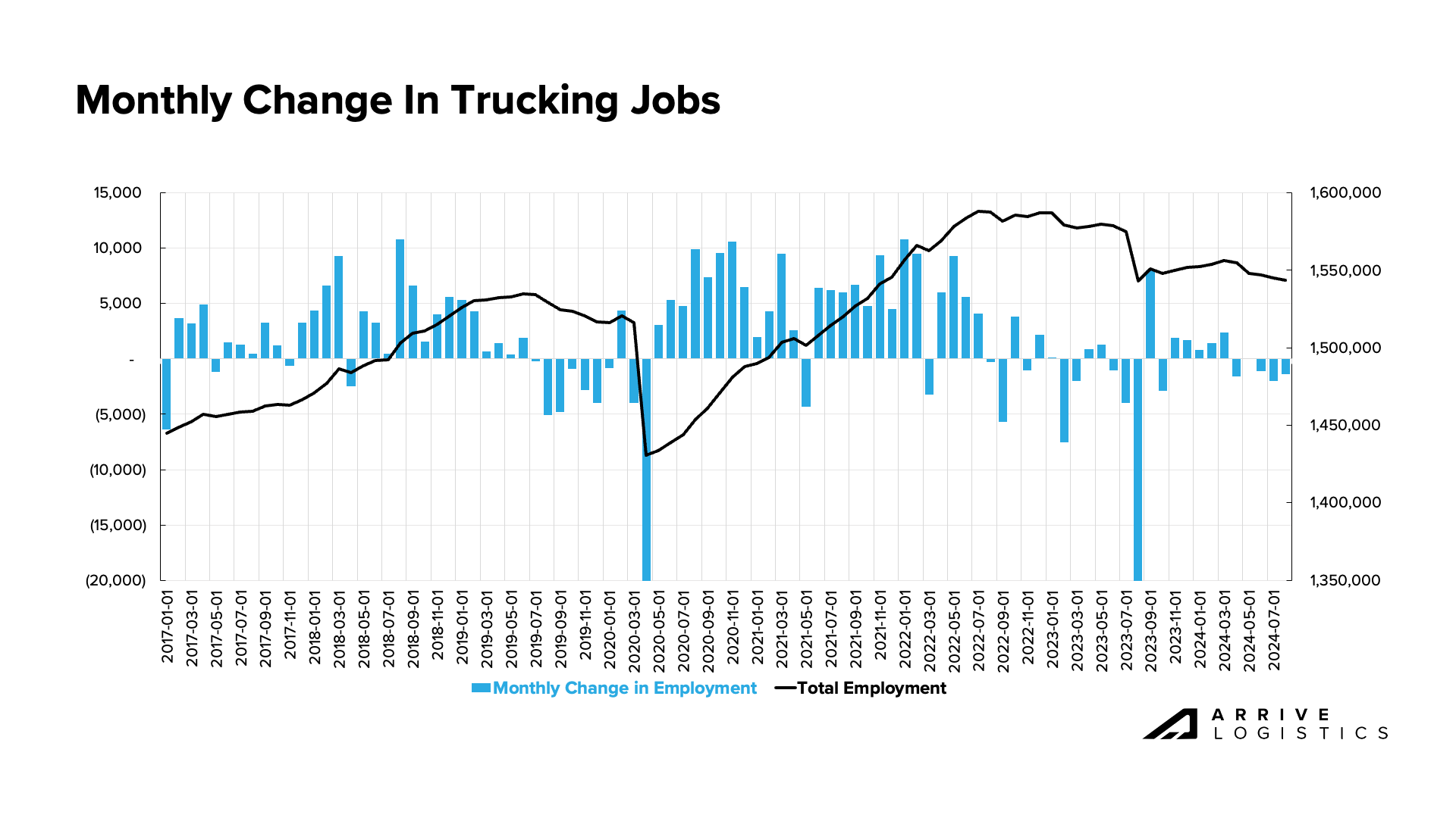 Economic trends in freight-related industries remain relatively soft. Manufacturing is flat year-over-year and housing starts are down 16% year-over-year. However, there are positive signs in the general economy, as retail activity had its best month since January 2023 and was up 2.7% from July of last year.