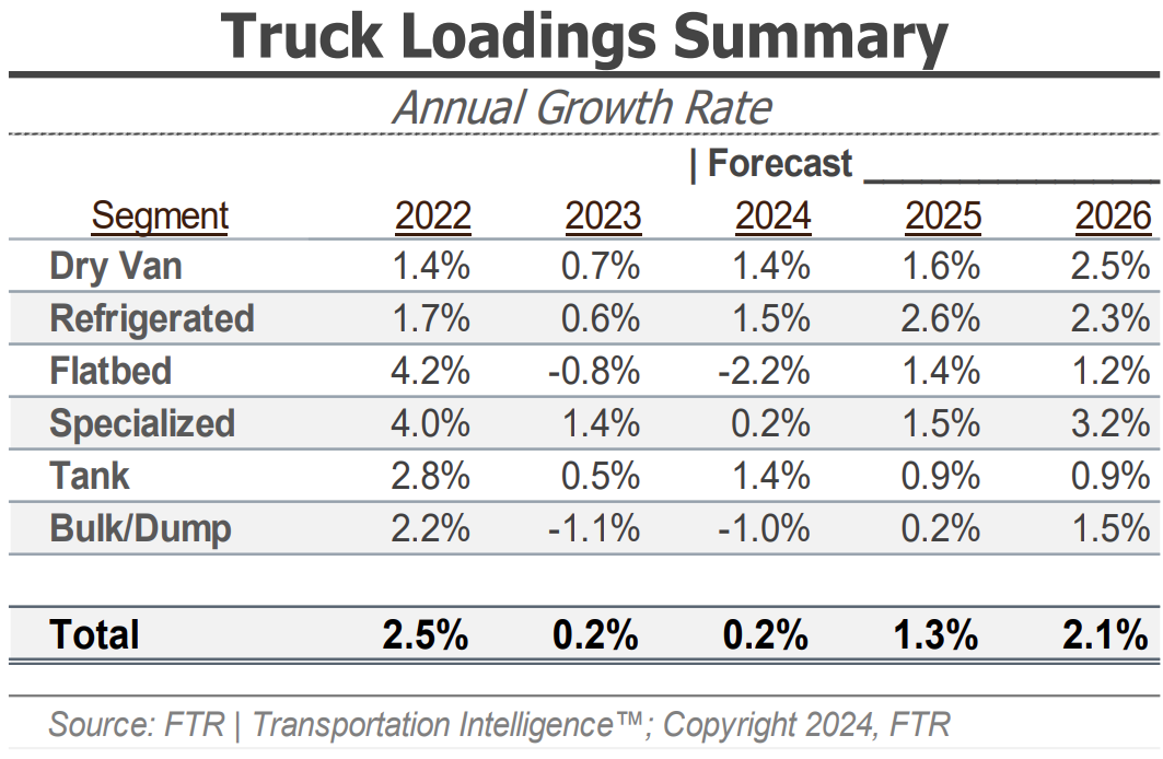Ultimately, FTR still believes the market will end the year with more truck loadings than in 2023, albeit by only a small margin. These trends support the low likelihood of a significant market shift in 2024, with potential improvements coming in 2025.