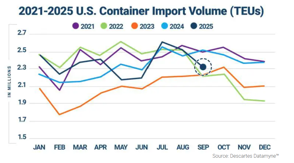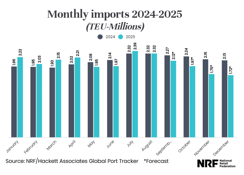 These variables, plus the fact that most retail imports were already pulled forward earlier in the year, suggest a muted holiday peak season could be on the horizon.