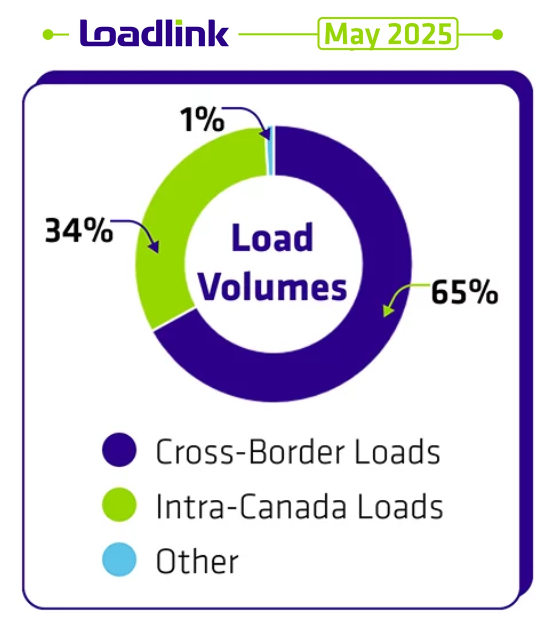 LoadLink data also highlighted several key spot market activity trends. Despite the tariff environment, cross-border freight made up 65% of all load postings, with inbound shipments to Canada showing more strength than outbound freight to the U.S. Inbound volumes rose 28% from April, while outbound loads fell 17%. Intra-Canada freight was more stable, dipping just 2% month-over-month. Still, all three lanes were down at least 20% year over year in May, underscoring the trade war’s broad impact on Canadian freight flows.